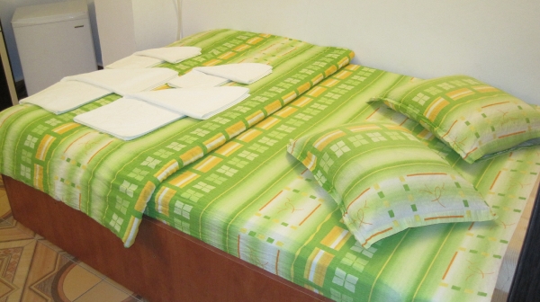 ^ Pensiunea are un total de 8 camere, doua cu pat matrimonial, 6 cu doua paturi single. Acestea sunt numai la etaj, distribuite in mod egal, 4 pe stanga, 4 pe dreapta.